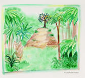 Welcome to our little online art gallery! Here you can explore, in full cacao color, the beautiful chapter illustrations in The Jaguar and the Cacao Tree. They are the work of artist Luba Rasine-Ortoleva—who also did the mesmerizing cover of the book. Click on the illustrations to see them in larger size.